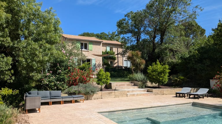 149 m2 - 5 chambres - terrasse de 80 m2 avec piscine au sel 8 x 3 m sur une propriété de 1 400 m2