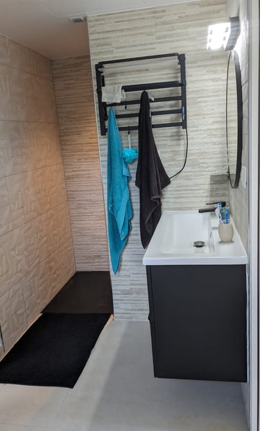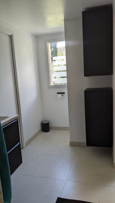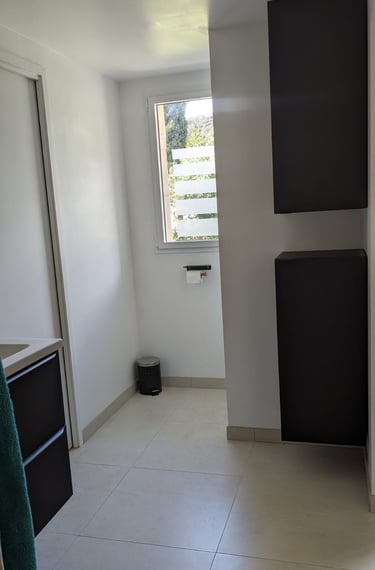 1 salle de douche avec WC communicante avec les 2 chambres RDC - Grande douche à l'italienne